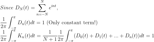 먼저 Dirichlet Kernel도 평균값을 내주자! -> Fejer Kernel이라고 한다.