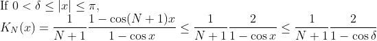 Fejer kernel도 Dirichlet kernel처럼 쓰기 좋게 바꿔놓았으니, 다음과 같은 성질이 있다는 것을 확인해보자.