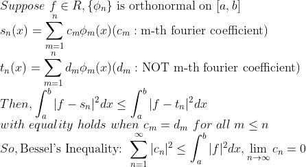-> 각 Basis의 성분(Basis와의 내적값)을 싹 다 더하면, 원래 Norm보다 작거나 같다! (In 힐베르트 공간)