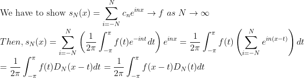 그럼 이제 저 Trigonometric Series s_N(x)가 f에 수렴하는지 살펴보자!