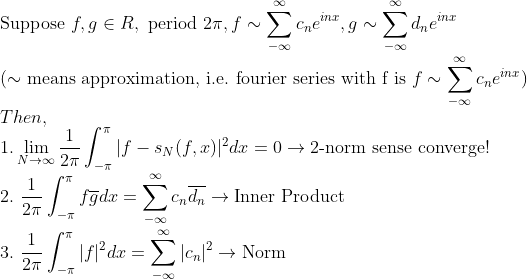 즉, 함수공간의 내적과 Norm은 그냥 Fourier Coefficient에서의 내적과 Norm과 같다!