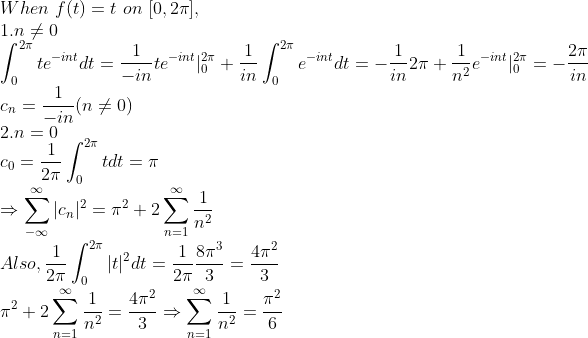 이 때, 앞에서 배운 Parseval's Theorem이 이 급수를 계산하는데 아주 큰 역할을 한다!!!