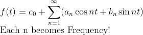 그러나, 위에서 소개한 푸리에 변환에서는 주파수가 굳이 Integer여야 한다는 가정은 없었다! -> 연속적인 주파수 Domain!