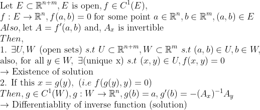 이 g(y)의 존재성을 논하는 것이 바로 음함수정리(Implicit Function Theorem)이다!