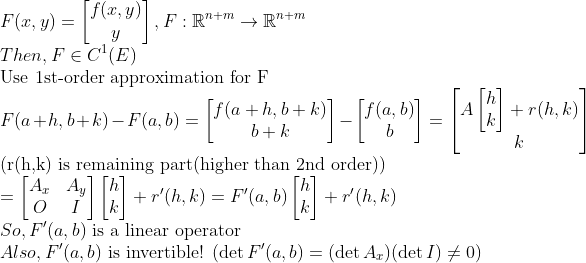 차원을 확장해서 생각해보자... -> 역함수정리를 쓰기 위해서, (n+m) -> m인 함수 f 말고, (n+m) -> (n+m)인 함수 F를 정의해보자!