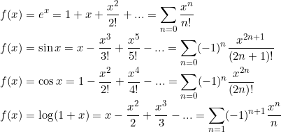 여기 제시된 모든 함수는 각 급수의 수렴반경 안에서 테일러 급수가 원래 함수와 일치한다.