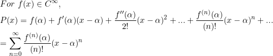 테일러 정리에서 n이 무한대로 가면, (즉, f(x)가 무한번 미분가능할 때(따라서 언제나 미분 결과는 연속))