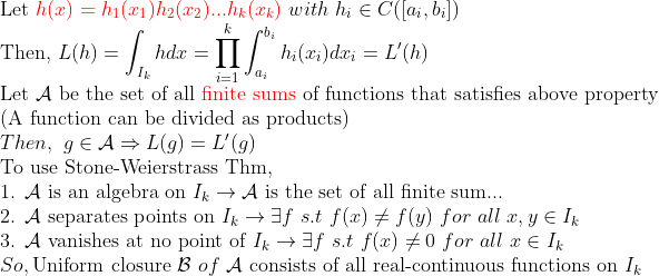 즉, 저렇게 곱으로 쪼개지는 함수와 연속함수가 Dense관계에 있다는 것을 알 수 있다. 이를 이용하면...