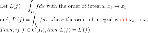 위에선 그냥 심플하게 x_k -> ..... -> x_1 순서대로 적분을 해봤는데, 이 적분 순서를 바꾸어도 상관이 없는 것일까?