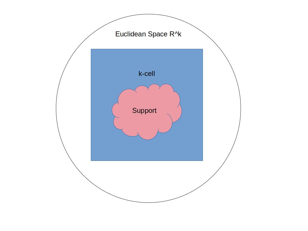 2. "임의의 적분구간(Support)"에서 적분할 때, k-cell로 늘려서 생각하면 된다! -> Support 밖에서의 f는 f=0으로 확장!