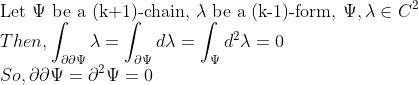 여기서 k-form과 k-chain을 계산했어야 했던 것이 -> (k-1)-form과 (k-1)-chain을 계산하는 것으로 치환될 수 있다고 생각할 수 있다.